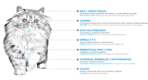 Estamos conscientes de que los primeros meses de vida de los gatitos son clave para determinar su calidad de vida en etapa adulta. Por ello, hemos formulado una nutrición especializada que favorece su óptimo desarrollo cognitivo, inmune, óseo y muscular.